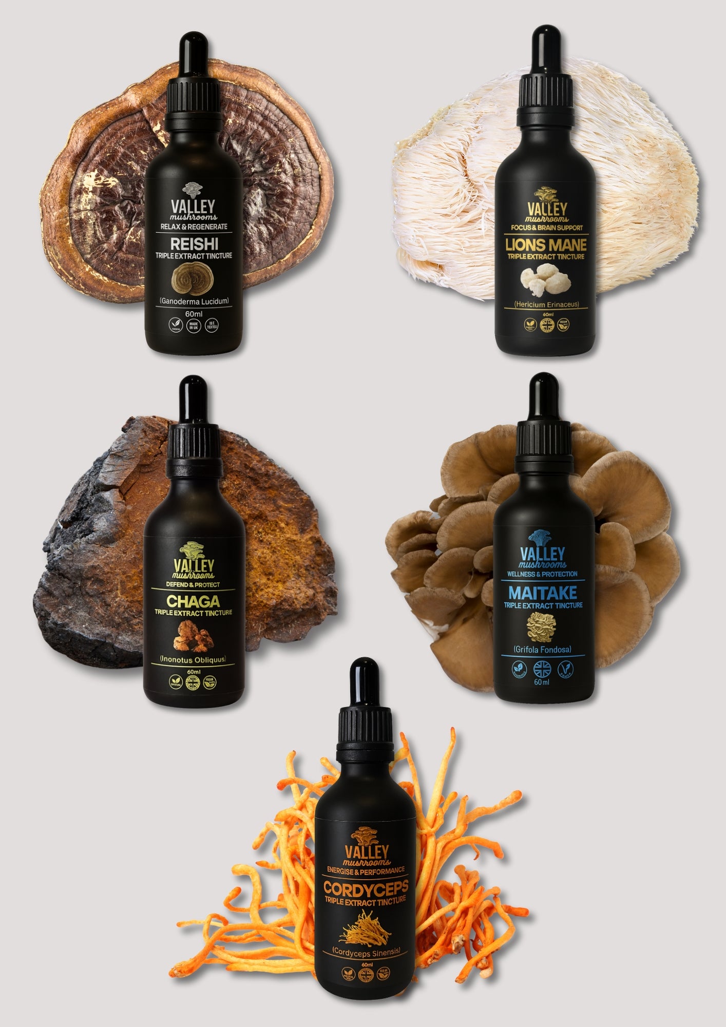 Valley mushrooms triple extract tinctures have been hyper-condensed to create an extremely potent yet natural formula providing our customers with the highest nootropic mushroom levels possible.